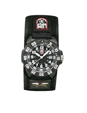 The Luminox Men's EVO Navy SEAL watch features a unique illumination system that glows 100 times brighter than other luminous watches, making it the perfect choice for low-light or non-light situations. This Swiss-made timepiece This versatile timepiece is constructed with a 43.8-millimeter polyurethane case, unidirectional polyurethane bezel with easy-to-read minute indexes, and a matching polyurethane band with Velcro clasp. Eye-catching Arabic numerals adorn the classic black dial face for easy readability, and a handy date calendar rests at the three o'clock position. Powered by analog-quartz movement and protected by a durable mineral dial window, this watch is preferred by US Navy SEALs and US Air Force Pilots, and is water resistant to a depth of 660 feet.